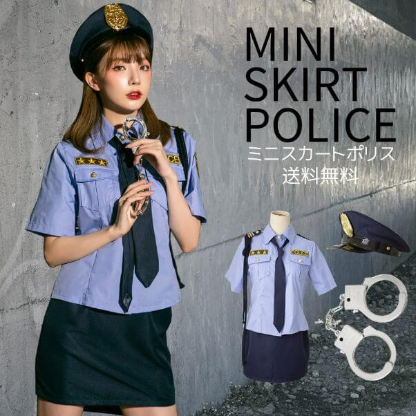 市販の女性警察官衣装はスカートの丈がかなり短く、全体的にセクシーなデザインとなっています。