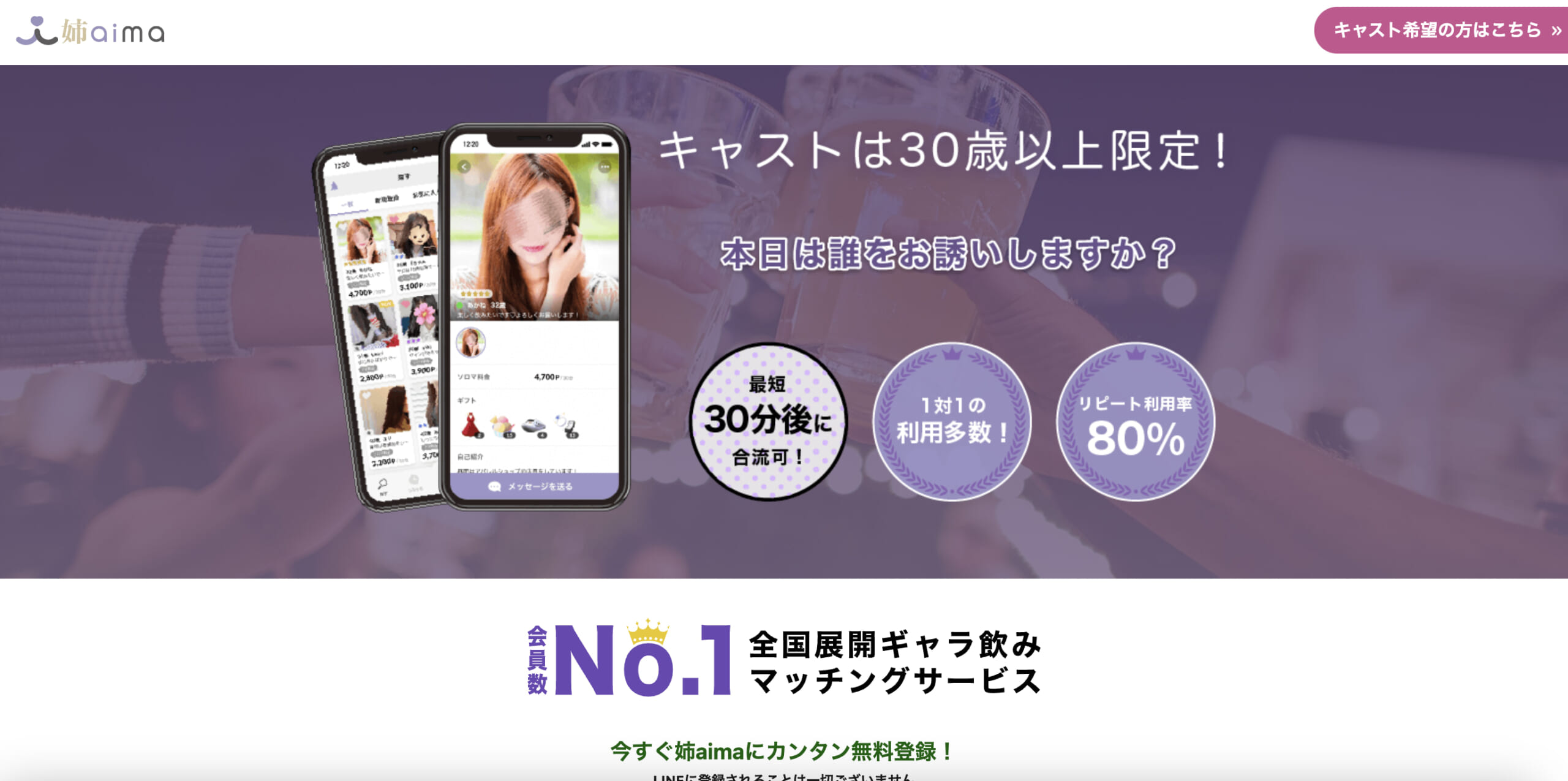 aima(アイマ)は8万人の会員が登録している人気ギャラ飲みアプリです。