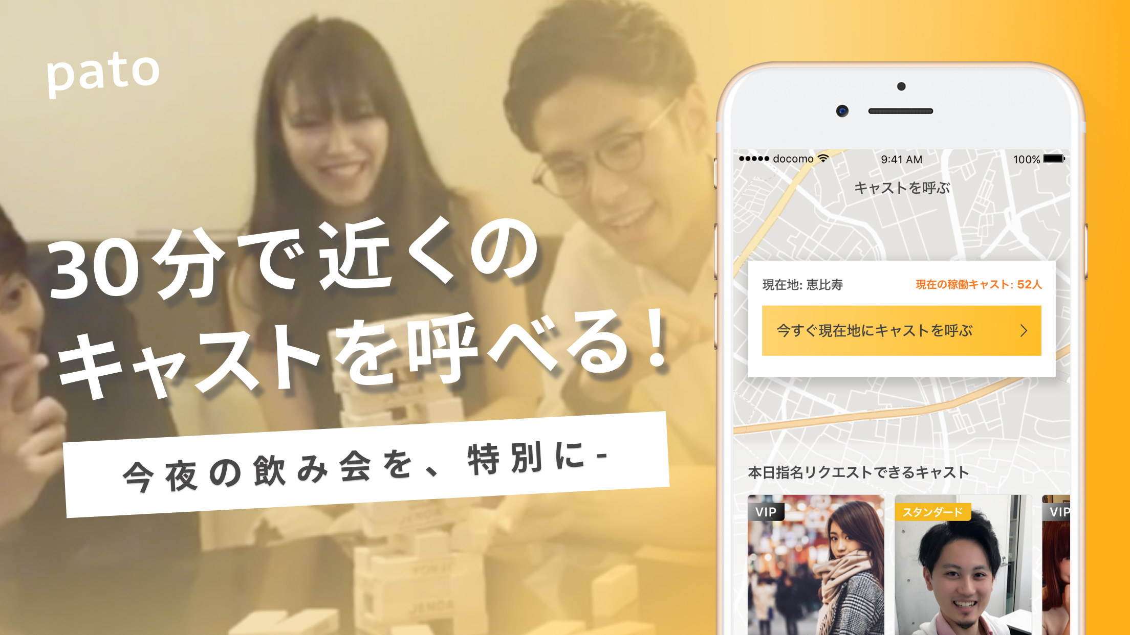pato(パト)は業界No.1である10,000人のキャストが登録しているギャラ飲みアプリ!