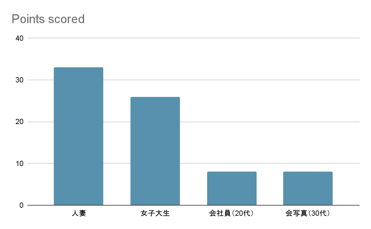 | 1日あたりの女性アクティブユーザー | 勝ち(20代〜40代で十分な利用者がいる) | 負け(20代〜40代で十分な利用者がいる) |