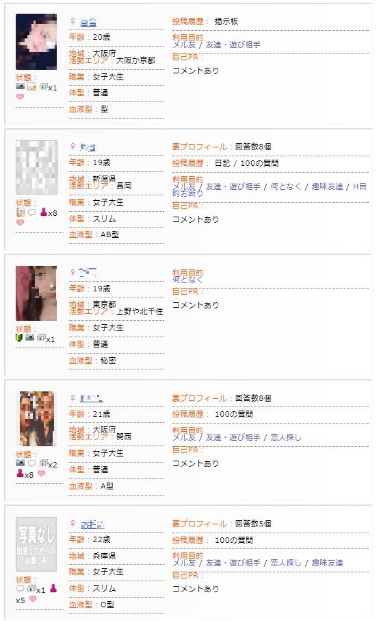女子大生の場合は年齢で絞り込むと後は本文に「大学生です」とか「学校に通っています」みたいなことを書いていたりするので、すぐにわかるかと思います。