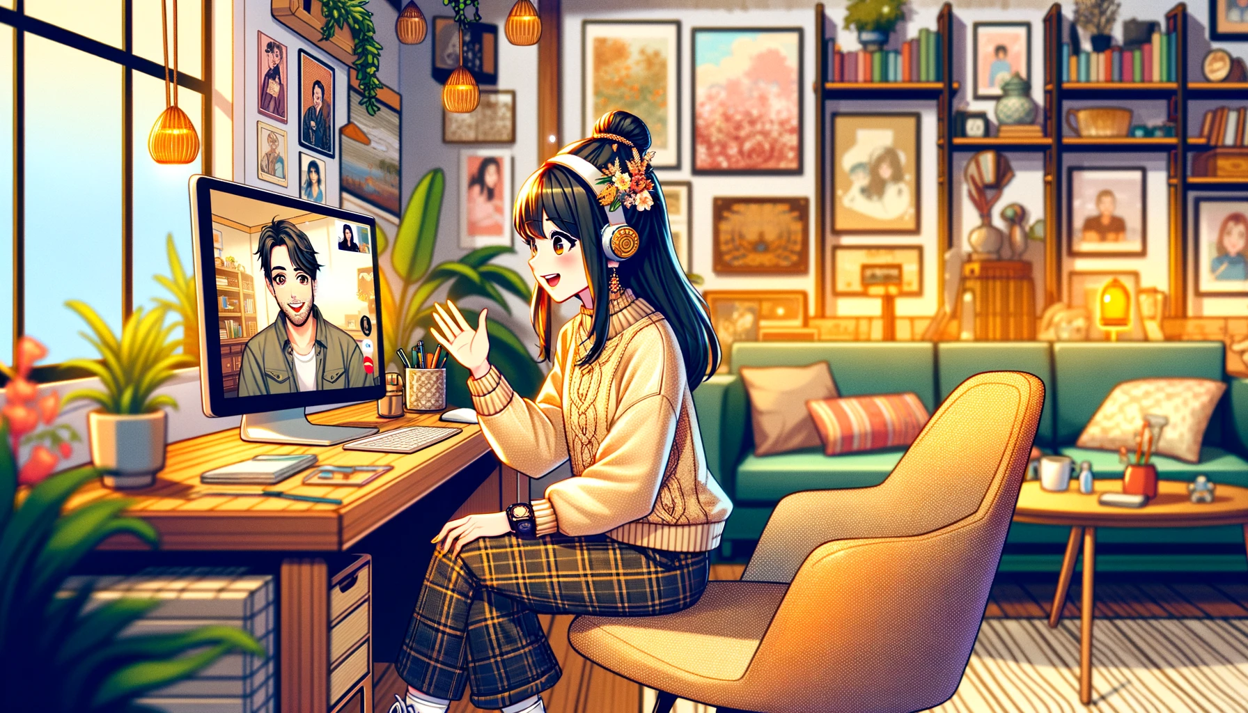 「バーチャルライブチャット」とは、vTuberのような二次元のキャラクターとライブチャットすることです。本物のライブチャットと違って、相手の女性は3D(もしくは2D)のアニメです。