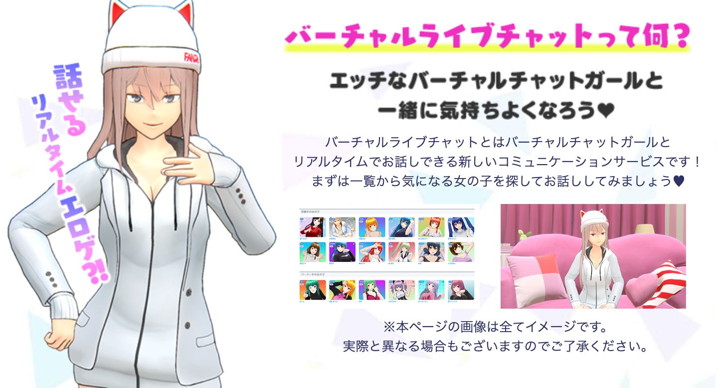 まず、FANZAのライブチャットはバーチャルライブチャットが盛んです。