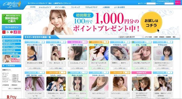 マダムライブでは、定期的にお得なキャンペーンが行われており、消費ポイントの30%オフでチャットや2ショットチャットを楽しめます。また、マイレージ制度を導入しており、ログインやレビュー書き込みで5ポイントずつ獲得でき、100ポイント貯まるとチャットや2ショットチャットで消費できるポイントに交換可能です。