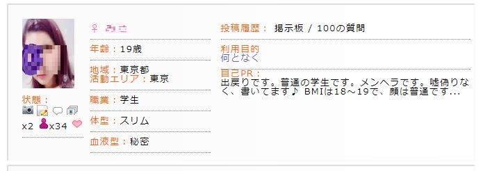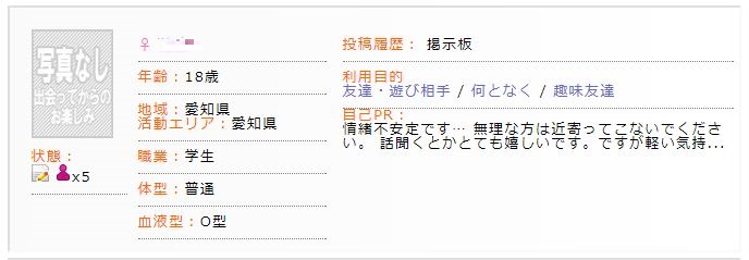 一般女性のプロフと見比べてもその違いは歴然なので、考えるまでもなく彼女たちがメンヘラであることはお分かりいただけるかと思います。