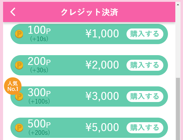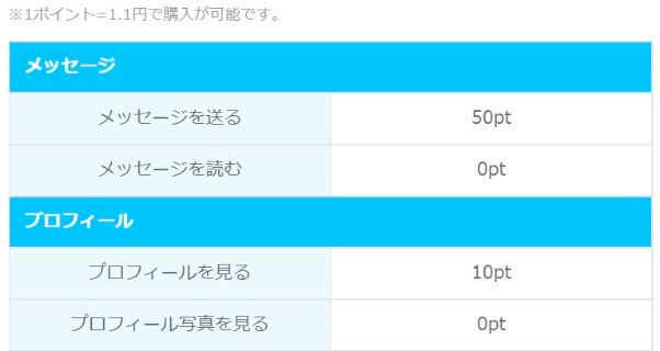 ハッピーメールのポイント消費とポイント料金は下記の通りです。