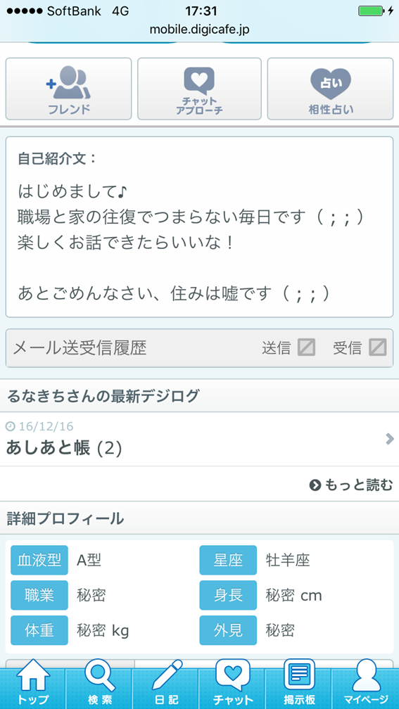 日記書いたりもできるので、単純にメールのやり取りばかりのサイトではありませ…