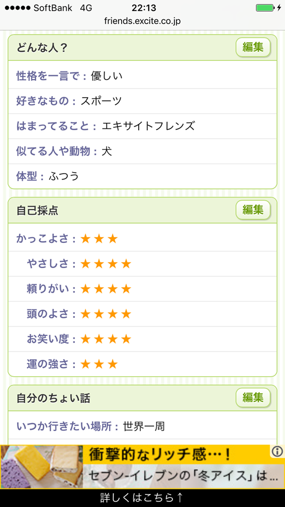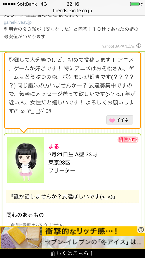 エキサイトフレンズはSNS感覚のシステムで、とにかくカテゴリーが多いです。
