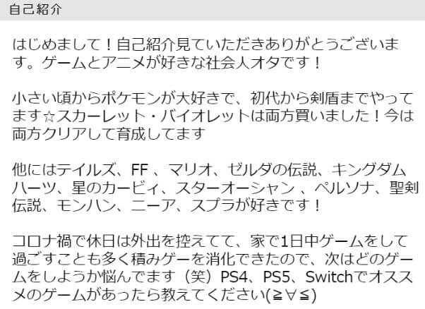 わざわざ体験談を長文で語らずとも、『興味あること』にキーワードをいれておけばあっさりお相手が見つかるはず。