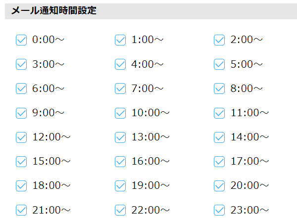 上記の操作を行うことで、チェックを外した時間帯はお知らせ通知が届かなくなります。
