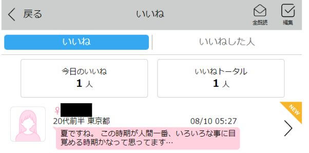 (『お相手からのメッセージ』『いいね』『タイプ』が対象)