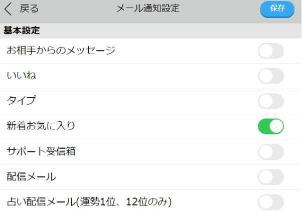 | 占い配信メール | ハッピー占いの結果が1位と12位の時に通知してくれる |