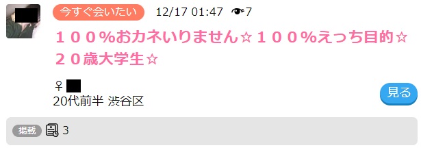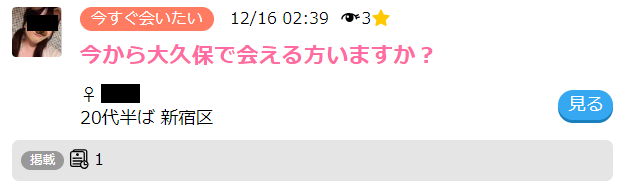 昨年、私が某出会い系サイトの掲示板でデート相手を探していた時のことです。