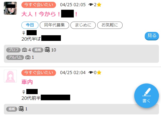 割り切り目的の男女が多く利用しているイメージですが、なかには業者が素人女性を装って登録しているケースも多いようです。