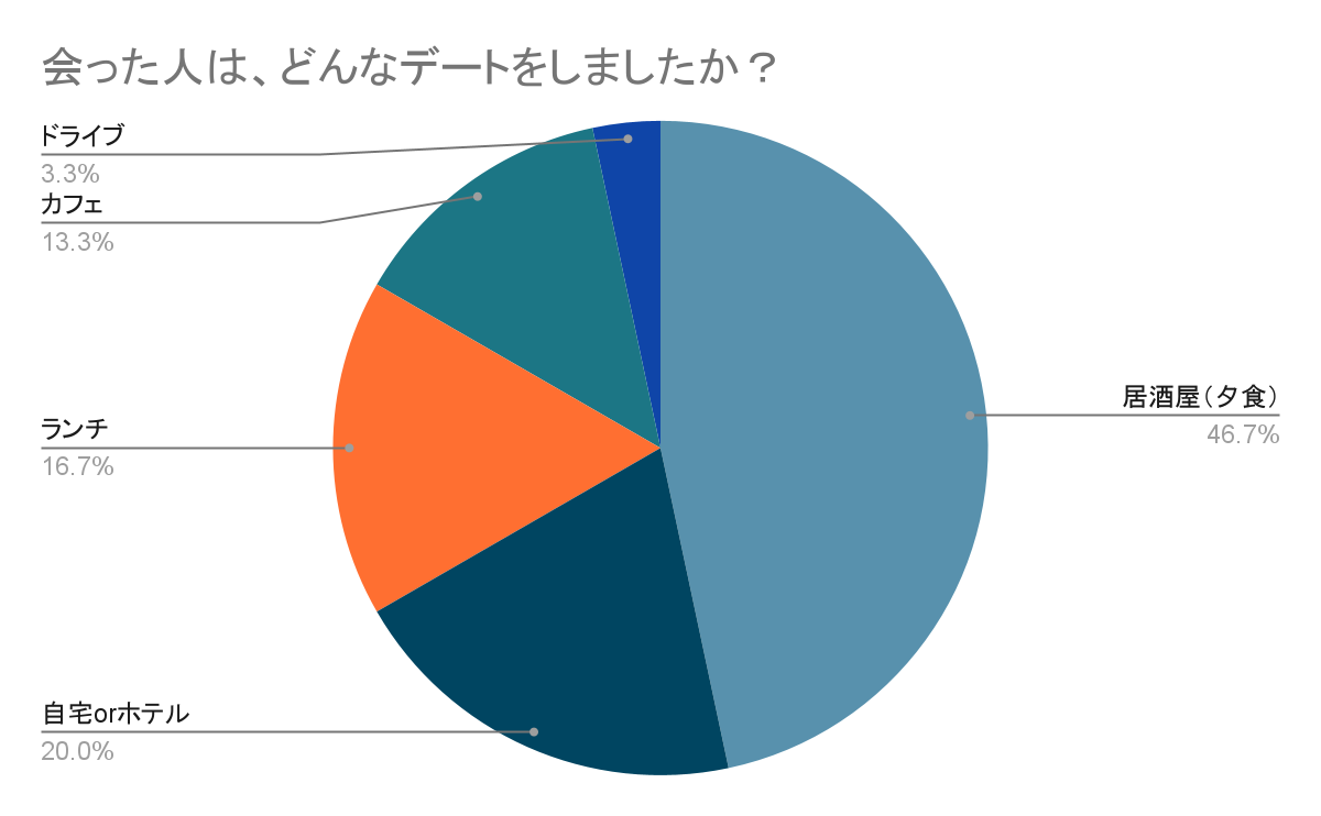 続いて、「出会ったことがある」と回答した男性に、デート内容を質問しました。