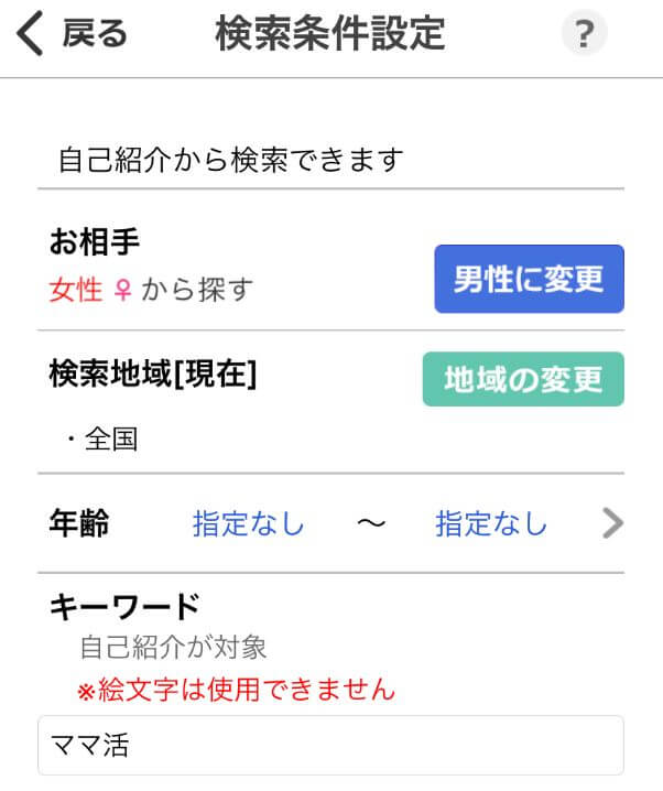 どの検索方法をとっても、イククルでママ活女性を見つけることは困難。