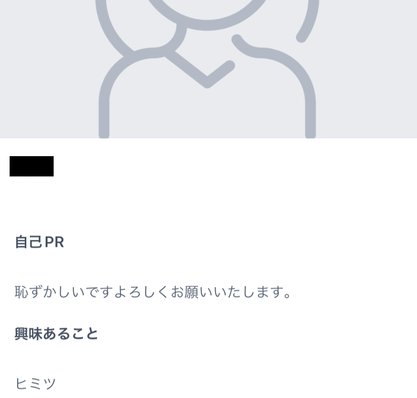 顔写真はなく、自己紹介も「恥ずかしいです よろしくお願いします。」と書かれているだけ。