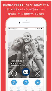 「日本人ではないけど、3人の女の子と知り合うことができました。」との口コミもありました。実際にアプリを通じて出会えたという口コミは結構ありますが、注意点がひとつ。外国人のユーザが多いので、英語が書けないとメッセージのやり取りが難しいです。そのため、英語ができて外国人と出会いたいという方にはおすすめできるアプリだと言えますね。