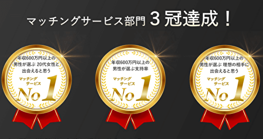 - ●年収600万円以上の男性が選ぶ、支持率No,1マッチングサービス