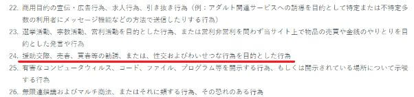 明らかにパパ活を意識して作られているラブアンですが、利用規約を読むと禁止行為であることが分かります。