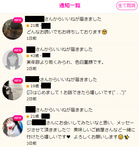 仮に男性が放置会員であっても、毎日数人から足あとが付き、いいねも平均して2件ほど送られてきます。