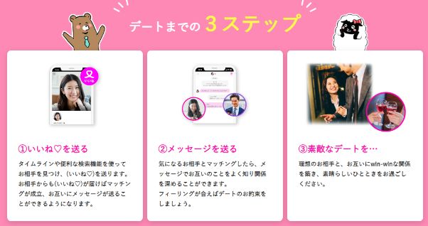 - ●マッチング後、当日か翌日にデート
