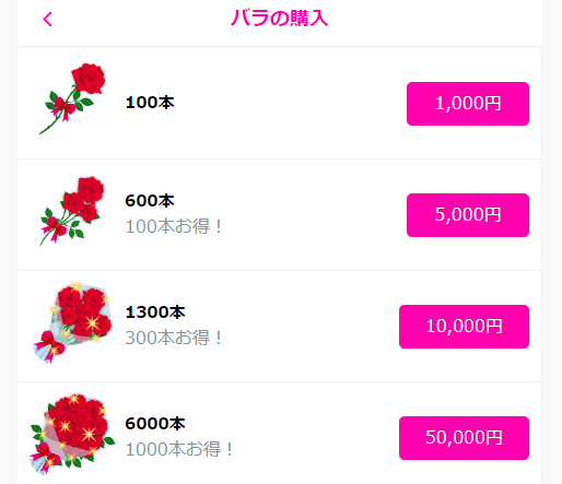 ラブアンのバラとは、サイト内における仮想プレゼントです。