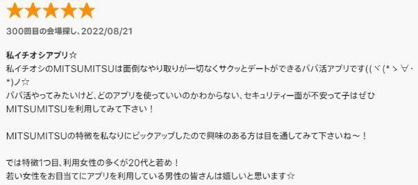 最後に、Appleストアに寄せられたミツミツの口コミ・評判の中から、代表的なものをご紹介します。