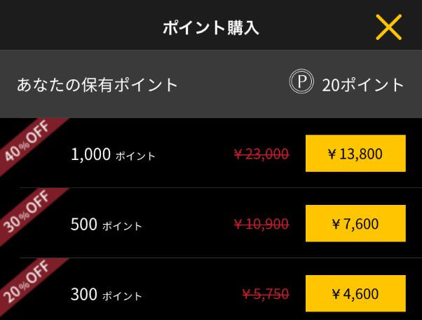 | ポイント数 | 金額 |