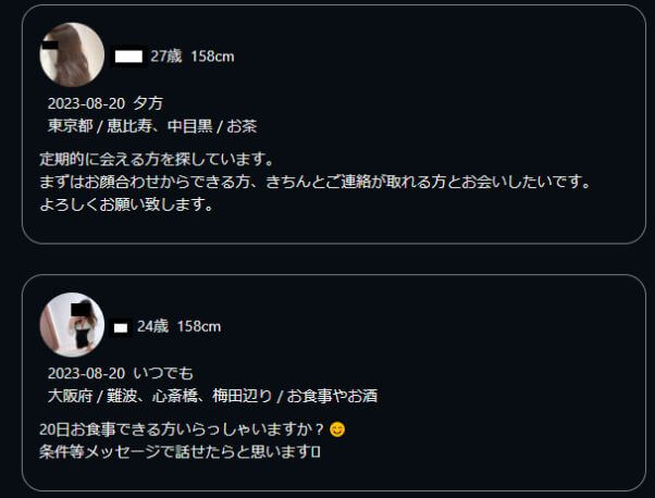 実際、アプリ内の掲示板をみるとパパ募集の投稿ばかりです。