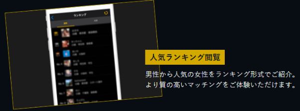 - ●ランキング機能で人気会員がわかる