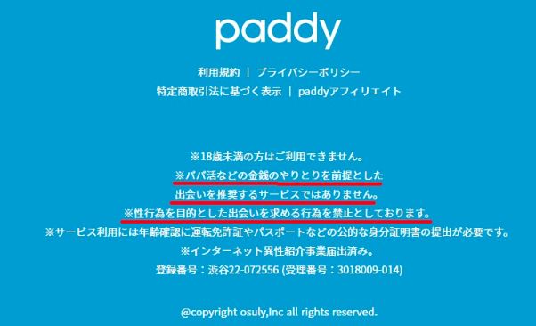 実際、PADDYの公式サイトには、「登録後に違反が発見された場合、当社判断で会員登録を無効とさせていただきます」という記載があります。