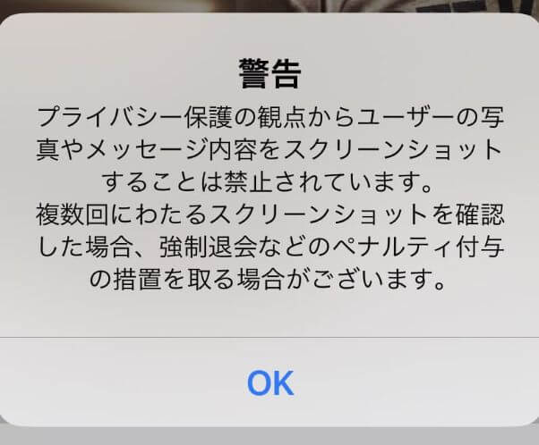ペイターズはアプリ内のスクリーンショット撮影を禁止しており、スクリーンショットの撮影をすると上の画像のような警告が表示されます。