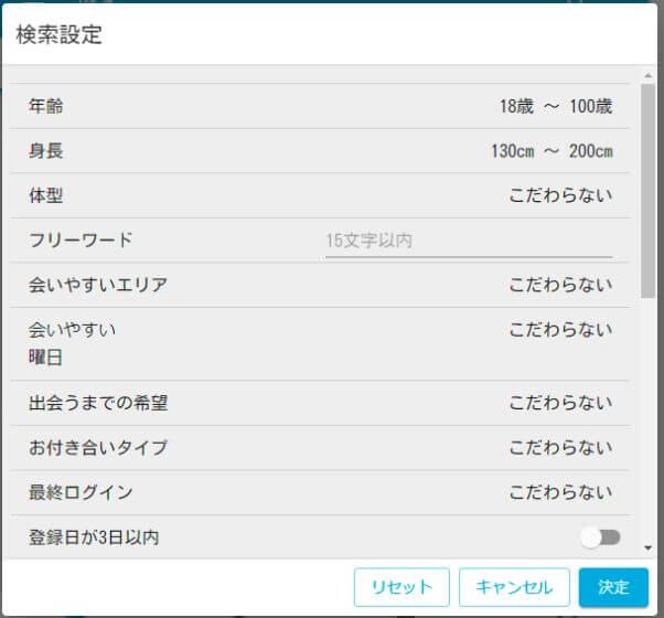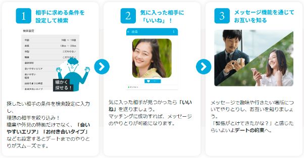 とはいえ、機能面はしっかりと作られており、先発の大手マッチングアプリと同等。