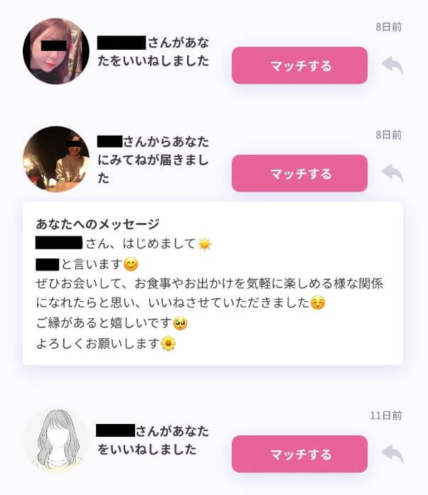これでは相性の良さが分からないため、いいねを大量送信するのがコツ。