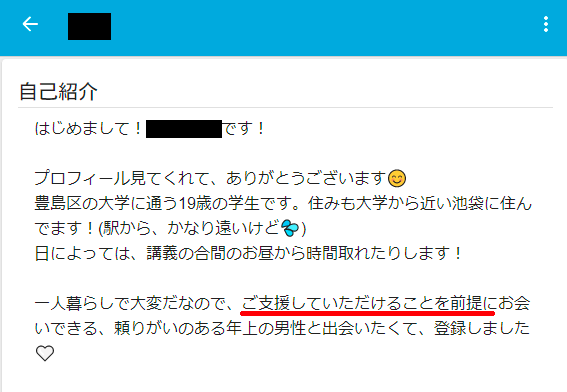 女性の自己紹介を読むとパパ活を匂わせているものばかりです。