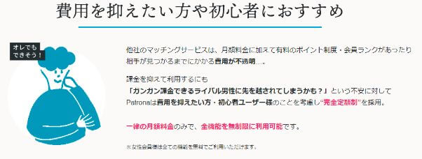 パトローナの料金体系は非常に分かりやすく、課金要素は男性の基本料金しかありません。