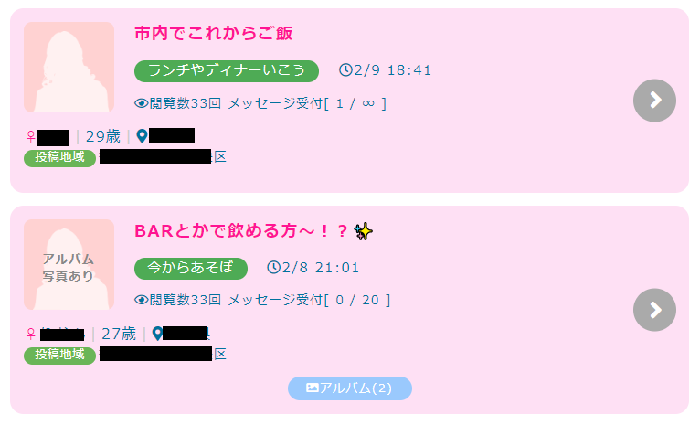 同じ出会い系でも、ハッピーメールやワクワクメールよりアクティブ率が高く、掲示板を中心にリアルな即会いを狙いやすい印象でした。