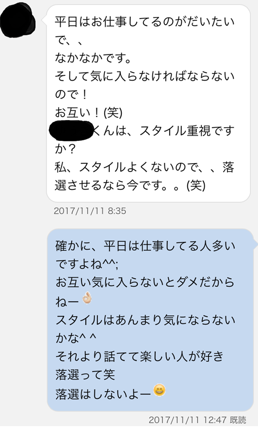 もしかしたら3,000円丸々使っても出会えないかもしれないな・・・とヒヤヒヤしていたんですけど、やってみたら思いのほかトントン拍子に話が進んで、管理人自身メールしながら驚いていました。
