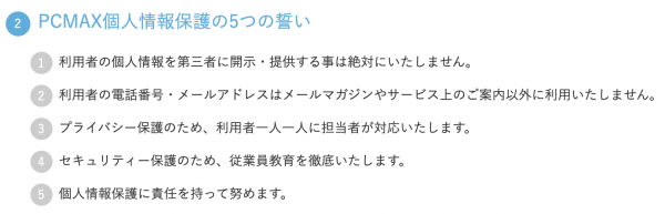 PCMAXはプライバシーポリシーで個人情報の取り扱いを明記しています。