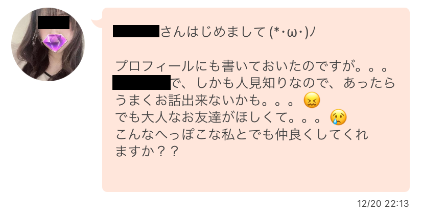 本人も「大人な友達が欲しい」と書いており、それを前提に私とやり取りしているのでしょう。