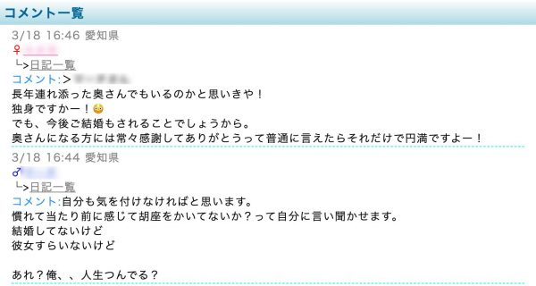 ポイント節約目的で日記にコメントする男性は多く、交流を楽しめそうと思えなければまず間違いなくスルーされてしまいます。