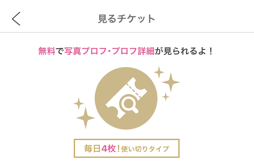アプリ版のPCMAXにログインすると、4回分の、「見るチケット」が配布されます。