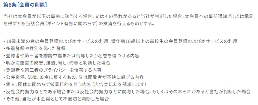 ポイント保有時に一番怖いのが強制退会です。