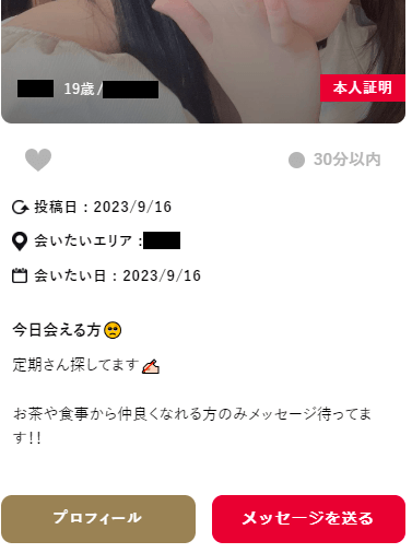そのため、掲載から数時間経ってしまうと、すでにお相手が決まっている可能性大。
