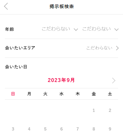 このような緊急性があるから掲示板を使う必要があるのであって、1週間も先のことならプロフィール検索からじっくりお相手を探した方が無難です。