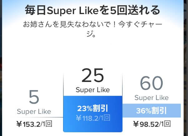 マッチング率が低いと『Super Like』代がかなりかかるので、その点は覚悟しておきましょう。