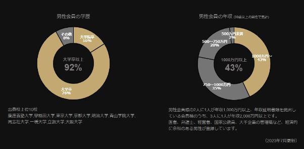 これは一般的にハイスペックな男性が集まるとされる交際クラブ並みです。