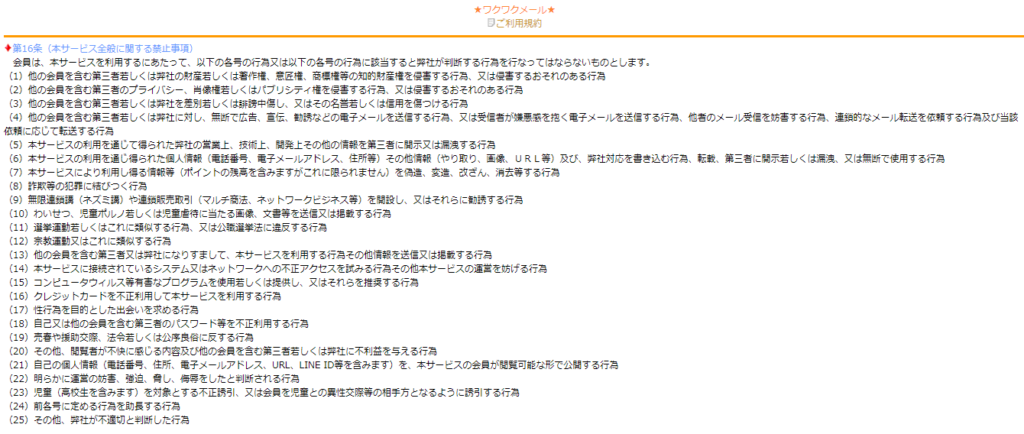 ワクワクメールの利用規約にうっかり違反してしまうと、利用停止になってしまうことがあります。