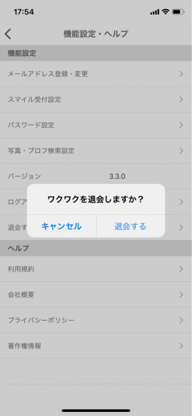 - 「ワクワクを退会しますか?」で「退会する」